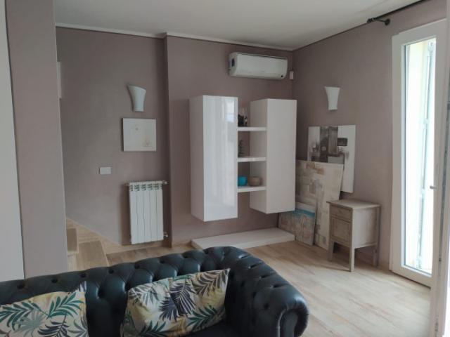 Nuovissimo terra tetto affiancato in pieno centro storico, a due passi dal Fortino, disposto su due piani fuori terra con piccolo giardino. Abitazione circa 80 mq, giardino circa 40 mq, distanza dal mare circa 300 metri. Al piano terra: porticato, soggiorno pranzo con angolo cottura, bagno. Al piano primo: camera, cameretta, bagno. Con un posto auto scoperto interno alla proprietà. In vendita con arredamento nuovo. Per informazioni sugli immobili in affitto contattare: Francesco 3202862626 Iryna 3456336368