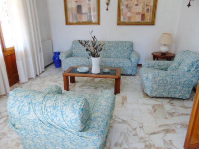 Rif. 378/H Villa singola tutta su un piano con bel giardino, veranda coperta con salottino esterno, composta da ingresso , doppio salone con salotto e sala da pranzo, cucina, una camera matrimoniale, due camere doppie e due bagni.