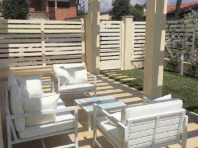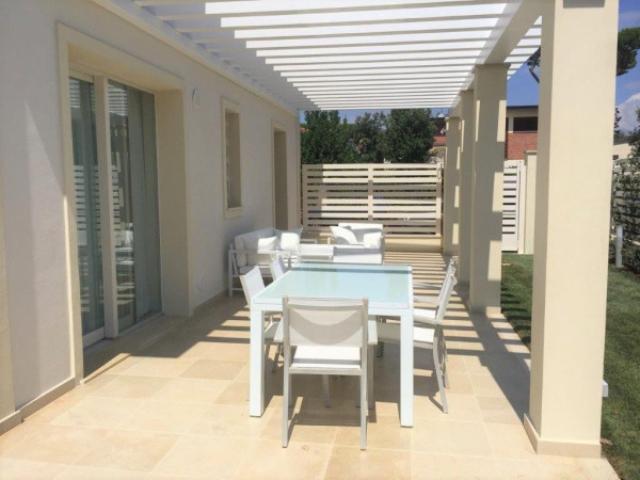 In centro a Forte dei Marmi villetta bifamiliare di recente costruzione con spazio esterno per pranzare all'aperto e piccolo giardino.