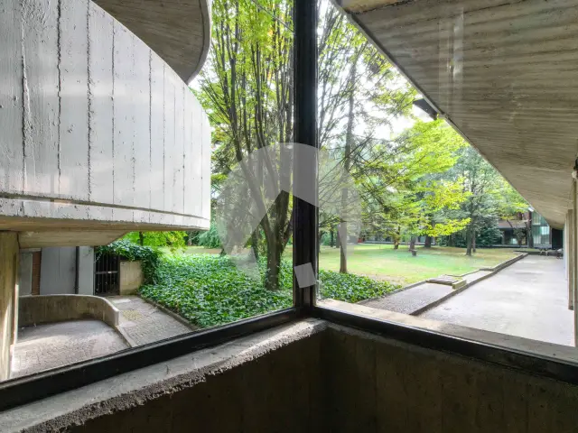 Parcheggio condominiale chiuso con cancello elettrico e ampio cortile condominiale.