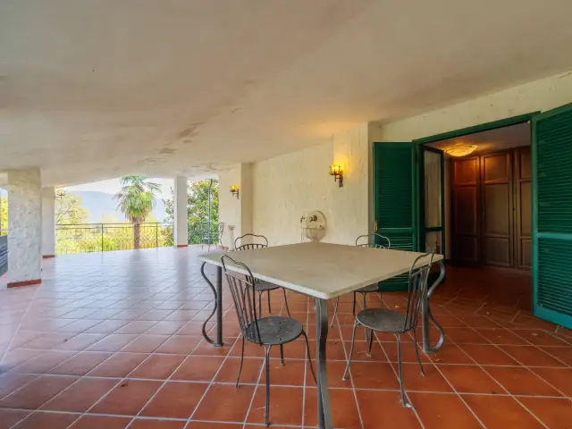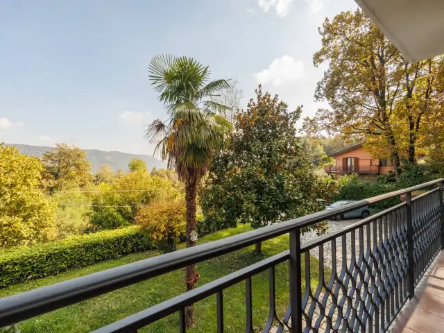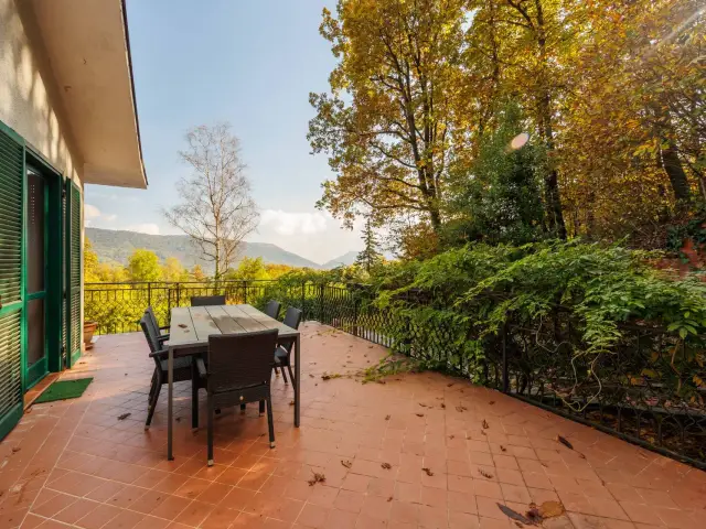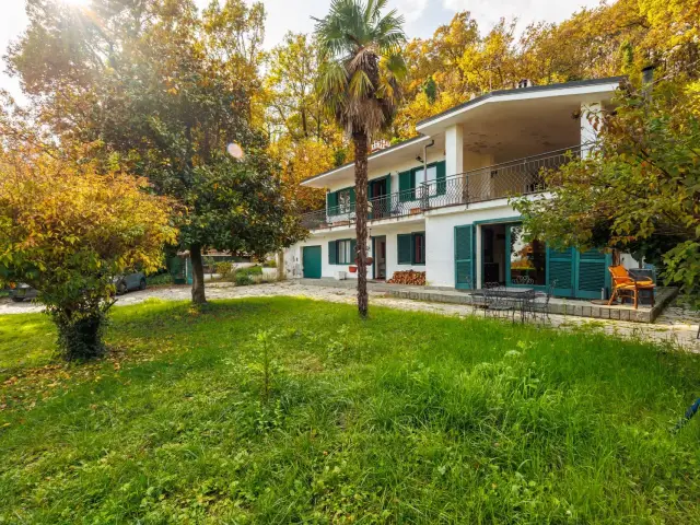 proseguendo al primo piano è nuovamente presente zona giorno con annessa sala da pranzo e secondo camino, due camere da letto ed un bagno, il tutto affaccia su giardino privato tramite due ampi terrazzi e balcone in facciata.