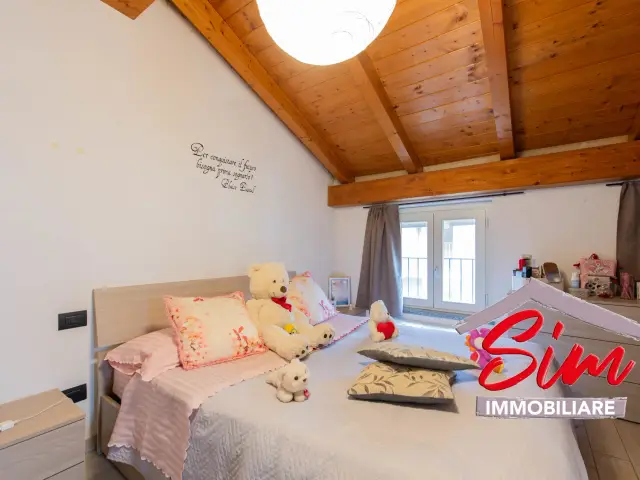 Al primo piano, la zona giorno accoglie con un’atmosfera calda e luminosa: l’angolo cottura si integra perfettamente con lo spazio living, mentre il balcone regala un affaccio piacevole e riservato. Salendo al piano superiore, la zona notte offre tranquillità e intimità, completata da un bagno moderno e funzionale.