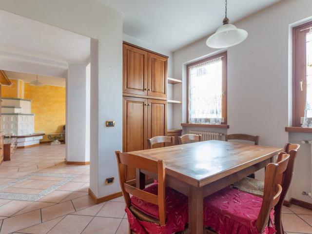 La prima porzione, ristrutturata e abitabile fin da subito, offre ambienti ampi, accoglienti e ben rifiniti. Al piano terra troviamo una zona giorno luminosa e spaziosa, con cucina e soggiorno separati, arricchiti dalla presenza di una tradizionale stube a legna, ideale per creare un’atmosfera calda e conviviale nelle stagioni fredde.