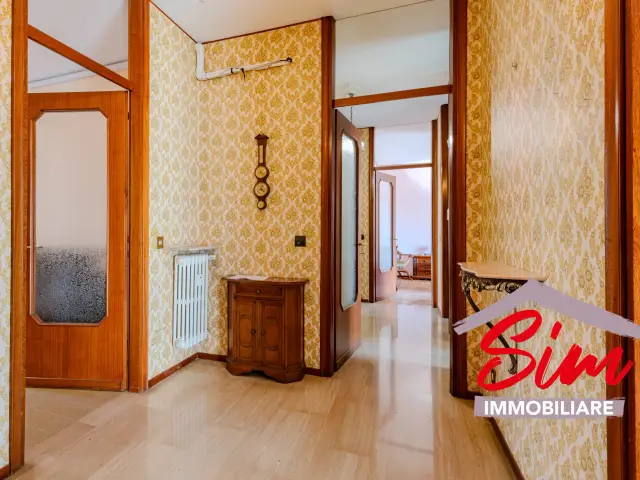 La casa è allo stato originale, ma già si percepisce il potenziale. Gli ambienti sono ampi e luminosi, con una zona giorno accogliente, una cucina dove si può davvero cucinare insieme, tre camere da letto e due bagni che aspettano solo di essere rinnovati. Ci sono balconi che affacciano sull’esterno, una cantina capiente e anche un’autorimessa, dettaglio prezioso in città.