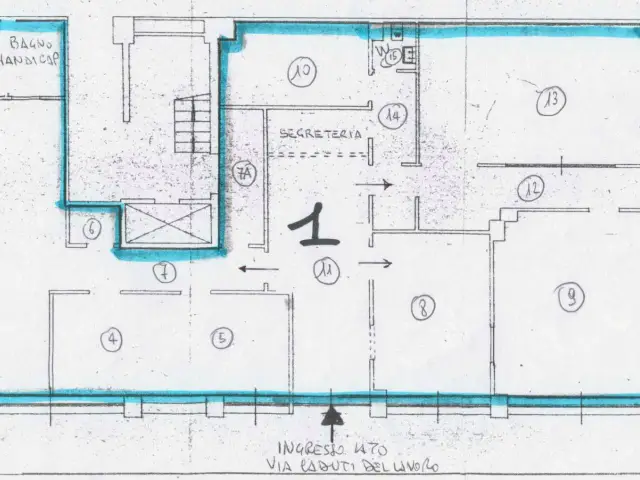 La planimetria rappresenta l'immobile intero da quale potranno essere tagliate diverse soluzioni, se possibili, a richiesta dell'acquirente.