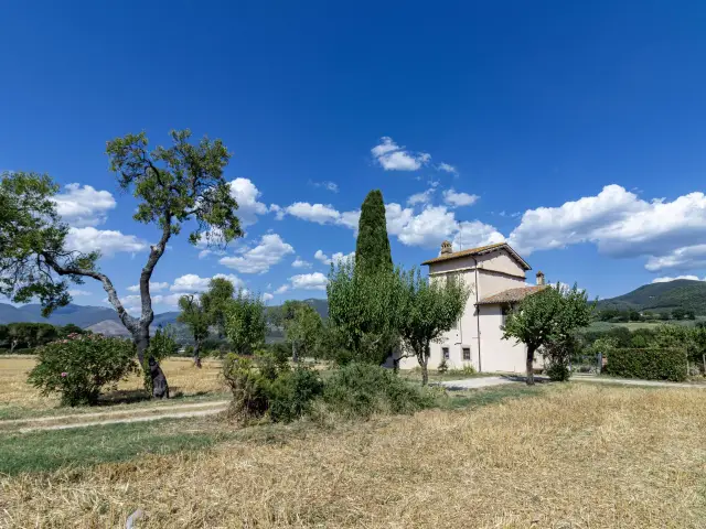 SPOLETO, LOCALITÀ MADONNA DI LUGO - A soli 2 km dal centro storico di Spoleto, immersa nella quiete e nella bellezza della cittadina umbra, in zona residenziale e ben collegata, con tutti i servizi a disposizione , sorge questa affascinante villa storica del Quattrocento, circondata da un terreno esclusivo di circa 4 ettari pianeggianti, con vista panoramica sulla Rocca Albornoziana.