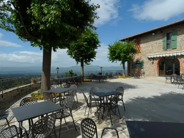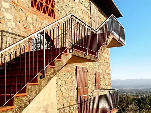 La proprietà, situata a 470 metri sul livello del mare, regala una vista spettacolare sulla vallata del Valdarno e sui borghi circostanti. La terrazza adiacente al casale, pavimentata con pietre originali, è il luogo ideale per godersi il panorama mozzafiato e il clima mite tutto l'anno. I terreni circostanti, estesi su 1740 mq, sono arricchiti da alberi da frutto e alberi di pregio, che circondano la biopiscina ecologica.