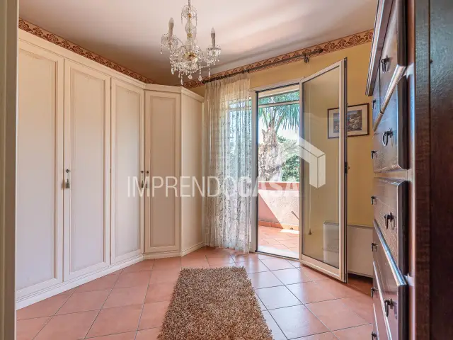 Una scala interna conduce al primo piano, composto da tre camere da letto e un servizio; due delle camere godono di balcone.
