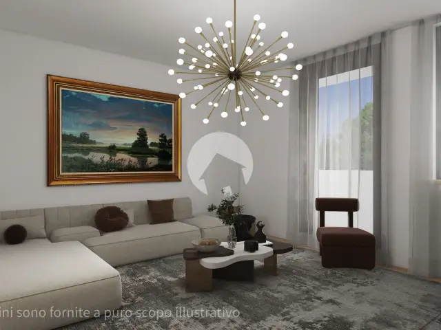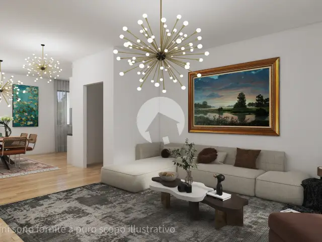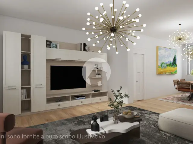 Composto da ingresso, soggiorno con cucina a vista (o con possibilità di renderla separata), tre camere da letto, e due bagni.