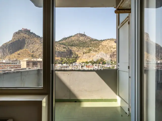 Dalla terrazza si può ammirare Monte Pellegrino con il suggestivo Castello Utveggio di fronte, e una splendida vista panoramica che si estende fino al mare. Lo spazio esterno ha una comoda profondità ed è ideale per collocare un tavolino con due sedie, per gustare una colazione all’aperto o per lasciarsi incantare dai colori cangianti del tramonto tra montagna e mare.