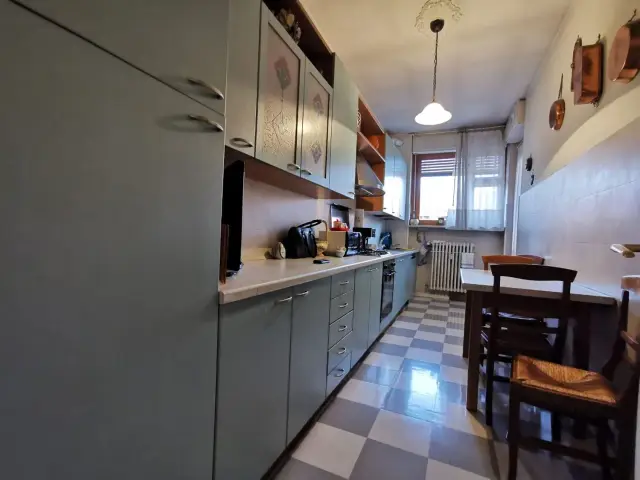Fossano, in via San Francesco D'Assisi, comodo a tutti i servizi e a due passi dal centro storico, ampio quadrilocale panoramico sito al quarto ed ultimo piano dello stabile servito di ascensore. L'immobile al suo interno è suddiviso come segue: ingresso su disimpegno, cucina, soggiorno, due camere, bagno, terrazza, locale lavanderia e balcone con vista sul castello degli Acaja. Completano l'immobile l'autorimessa e la cantina al piano interrato.