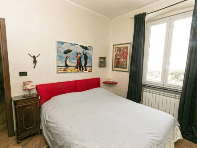 L’immobile si apre su una luminosa zona living esposta a sud, con splendida vista mare e panoramica sulla città. La cucina è abitabile e finestrata, le camere da letto sono due, entrambe di generose dimensioni. Completano la proprietà doppi servizi e comoda armadiatura a muro.