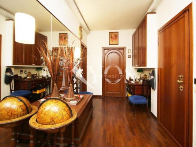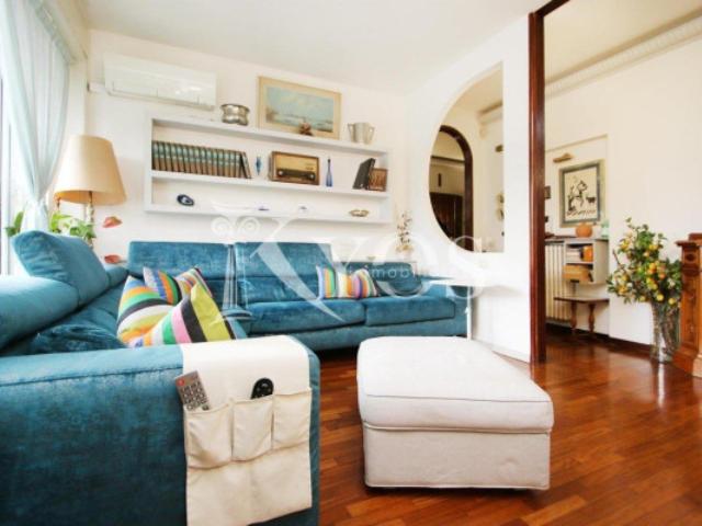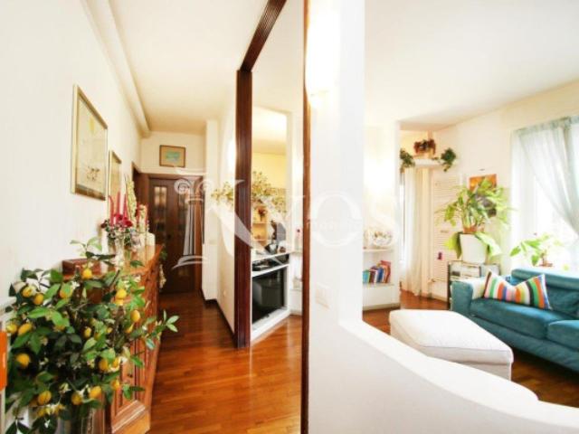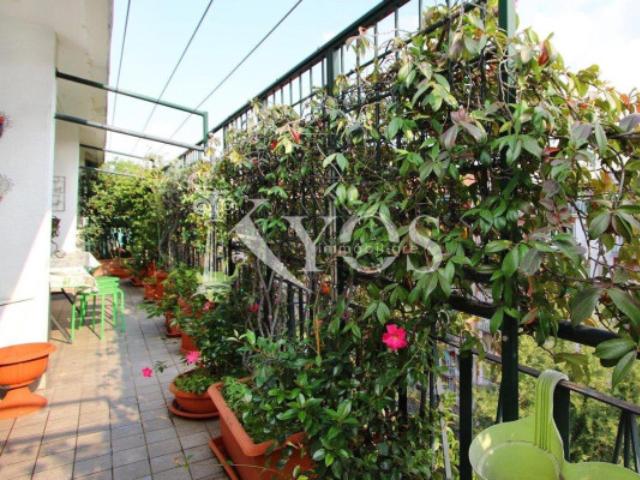 Immediate vicinanze di Piazza Frattini, in via Almerico da Schio, Kyos Immobiliare propone in esclusiva un ampio plurilocale con grande terrazzo situato all'ottavo ed ultimo piano di un elegante stabile con servizio di portineria, ascensore e giardino condominiale.