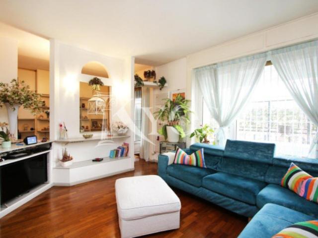 Gli affacci sono particolarmente silenziosi e soleggiati grazie alla tripla esposizione verso Est, Ovest e Sud, mentre il grande terrazzo di circa 60 mq, distribuito su due lati, offre uno spazio esterno di rara esclusività, perfettamente sfruttabile grazie alle quattro aperture. Il layout regolare dell'immobile garantisce inoltre ampie possibilità di personalizzazione degli spazi interni.