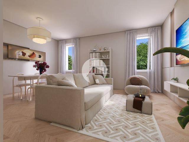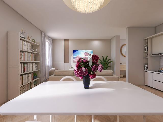 L’ingresso dell’abitazione, spazioso e luminoso, introduce nella zona giorno composta da un soggiorno accogliente e ben distribuito con angolo cottura a vista, per una superficie complessiva di circa 30 mq, ideale per creare un ambiente conviviale e funzionale. Proseguendo si trova un bagno moderno e ben rifinito, mentre la zona notte è composta da una camera matrimoniale di oltre 17 mq, ampia e luminosa, e da una camera singola, perfetta come stanza per ospiti, studio o camera per bambini.
