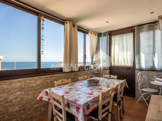 Grazie alla tripla esposizione e il piano alto, l’appartamento gode di un’ottima luminosità e di una splendida vista mare.