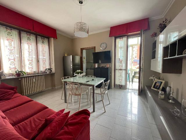 ingresso, tinello con cucinino, due ampie camere, servizio, due balconi di cui uno verandato e condonato.