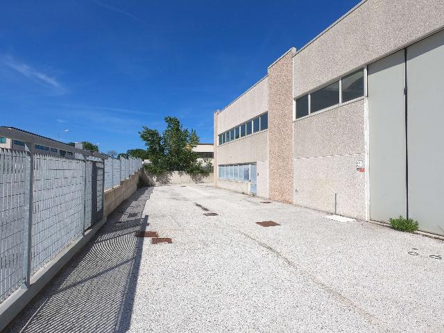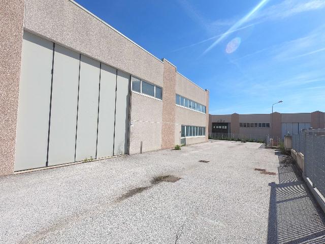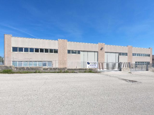rif.046LE - In zona industriale di San Costanzo (Pesaro), vendiamo capannone realizzato su un lotto di forma pressoché quadrata, distinto da due unità immobiliari indipendenti, ciascuna composta da una zona adibita a laboratorio, rispettivamente di circa 1650 e 480 mq e da una zona uffici soppalcata di 108 mq per livello.
