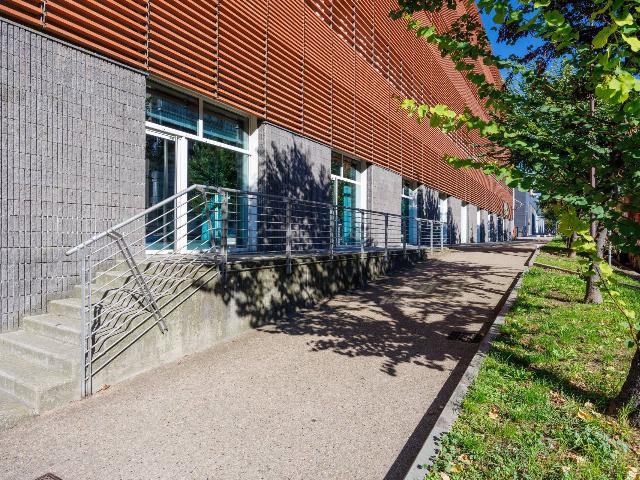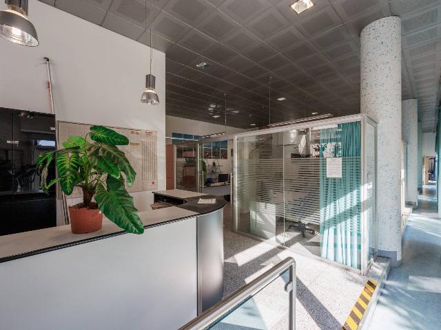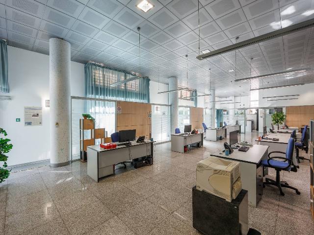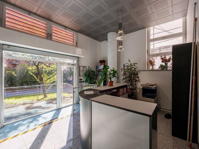 Gli spazi interni sono facilmente modulabili e attualmente comprendono: una reception accogliente, una sala riunioni, un'area break e una zona open space che ospita 14 postazioni di lavoro. Completano la disposizione una sala conferenze con capienza fino a 99 persone, locali tecnici e due servizi igienici. Le vetrine sono dotate di serrande motorizzate, il riscaldamento e il raffrescamento sono autonomi (circa 3.500 euro/anno), l'immobile viene venduto come si vede in fotografia, con pavimenti galleggianti, controsoffitti con corpi illuminanti e completamente cablato. Zona commercialmente molto vivace.