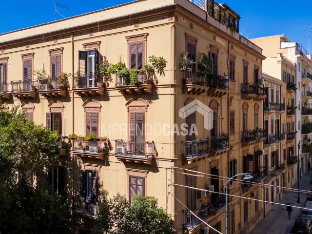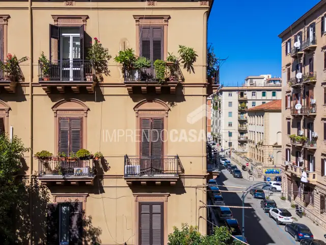 Via Catania. 5 vani 155 mq con 6 balconi, posto al 2° piano con ascensore di un elegante edificio in via Catania angolo via Noto, tra via Principe di Villafranca e via Sammartino, a pochi minuti a piedi da via Dante e via Libertà, nel tratto Croci-Politeama. (Rif. T 5237)