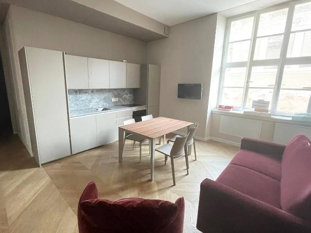 Nello splendido contesto del Palazzo Masino, appena restaurato, situato di fronte al Palazzo Lascaris, sede del consiglio regionale del Piemonte, appartamento arredato al secondo piano composto da ingresso su salotto con cucina a vista, bagno e camera. La camera è dotata di doppio affaccio, su Via Alfieri e su Via Arsenale, mentre il salotto affaccia su Via Arsenale, e non è dotato di balconi. E' presente una cantina. Il palazzo è dotato di portineria, ascensore e totale accessibilità, e nel seminterrato saranno disponibili ai condomini una palestra e un deposito biciclette. Il riscaldamento e il raffreddamento sono a pavimento, centralizzati a gestione autonoma