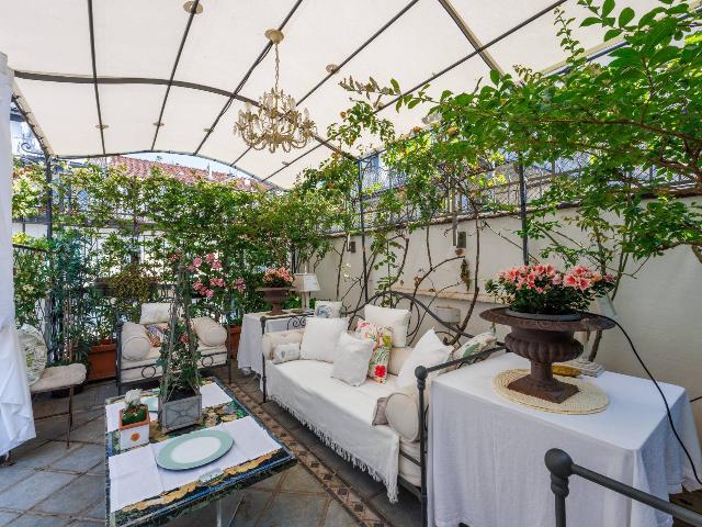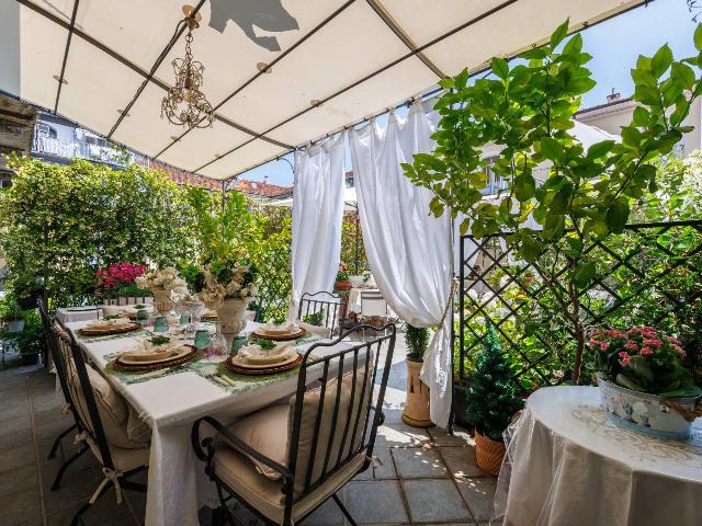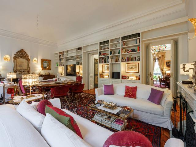 L'immobile è composto da ingresso, salone doppio con due camini, sala da pranzo, cucina abitabile con soffitto affrescato, tre camere da letto di cui quella padronale con bagno en suite e cabina armadio, un bagno e lavanderia. Attraverso la cucina si accede ad uno splendido grande terrazzo, interno cortile, esposto a est. L'unità immobiliare è ricca di particolari e decorazioni d'epoca, parquet originale nel salone e nelle camere, predisposizione per l'aria condizionata e infissi con doppio vetro camera. Possibilità di subentrare alla locazione di un box doppio e completa la proprietà una cantina di pertinenza.