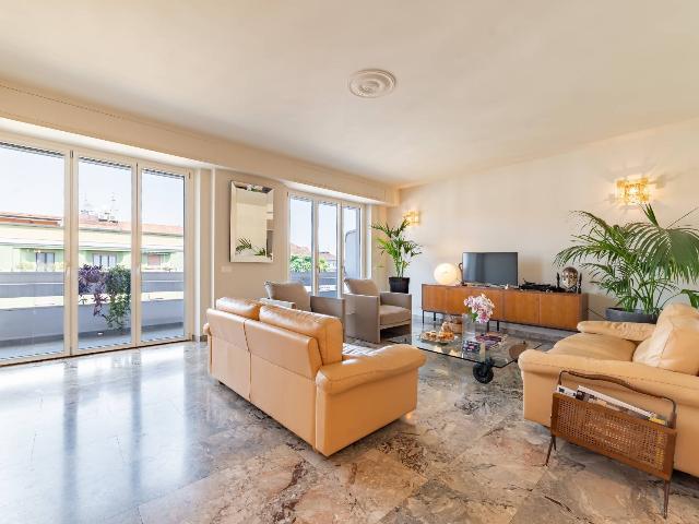 L'immobile proposto è all'ottavo e ultimo piano, internamente l'appartamento, ispirato all'estetica di Frank Lloyd Wright, è sviluppato su un unico piano e presenta una disposizione degli spazi ottimale. Progettato da un'interior designer, è caratterizzato da materiali scelti secondo i principi del "Vastu" e offre un ambiente caldo e accogliente. Si compone di tre camere, tre bagni, due cucine e un ampio balcone. La sicurezza è garantita da porte e galleria chiusa, con un servizio di portineria attivo durante il giorno. La ristrutturazione, realizzata da Tea Costruzione e Design, utilizza materiali di pregio provenienti da uno showroom storico. L'immobile è in classe energetica C, dotato di impianti separati, aria condizionata, pavimenti in parquet di rovere e illuminazione di design. La cucina è firmata Arrital con elettrodomestici Miele e Smeg. La casa è venduta arredata, con possibilità di concordare i mobili da mantenere.