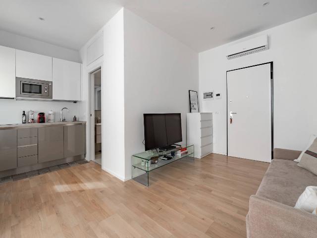 L' immobile ha una luminosità importante con un' esposizione a sud - est. Il monolocale così composto presenta, ampio soggiorno con cucina ad induzione a vista, arredamento fatto su misura per ottimizzare gli spazzi.