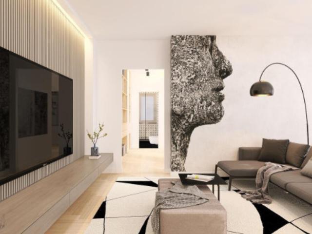 L'ingresso accogliente conduce ad un luminoso soggiorno, perfetto per momenti di relax, e una cucina abitabile, entrambi con accesso diretto al lungo balcone che abbraccia l'intera zona giorno.