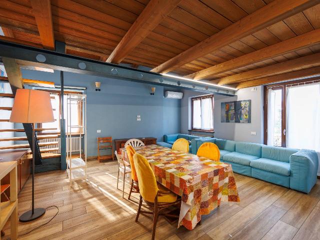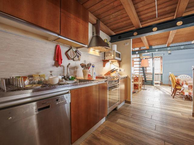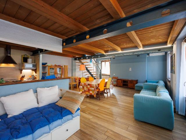 -al piano terra l'ingresso si affaccia sulla zona giorno composta da grande salone con soffitto con volte a botte e mattoni a vista, camino, una grande cucina abitabile con penisola all'americana e accesso diretto al giardino privato, oltre ad un bagno di servizio.