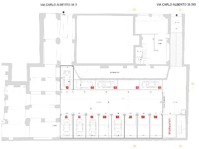 Via Carlo Alberto, nel cuore del centro storico, box auto in fase di costruzione al piano terra di 18mq con portone basculante. Larghezza 3,00 metri, lunghezza di 5,50 metri.