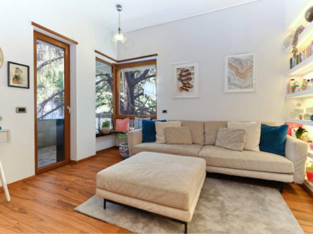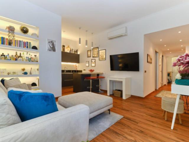 L’appartamento è stato ristrutturato con materiali e finiture di qualità ed è dotato di infissi in vetrocamera con doppia apertura classica e vasistas, porta blindata, porte in vetro e scorrevoli, impianto di aria condizionata e parquet.