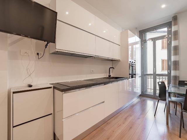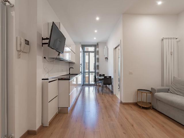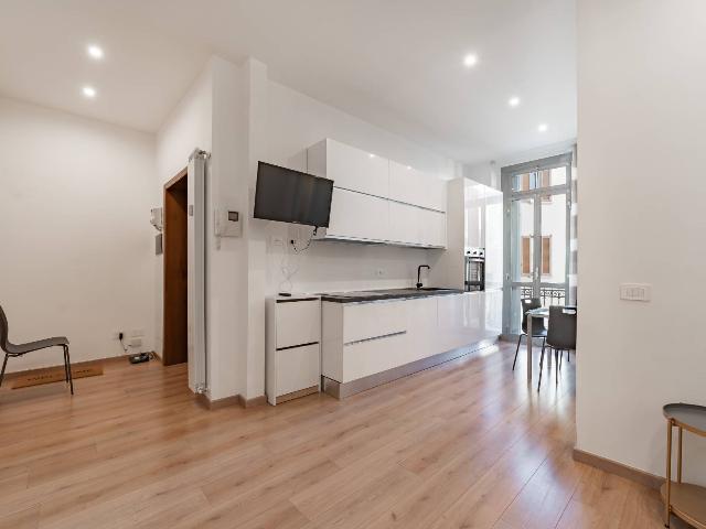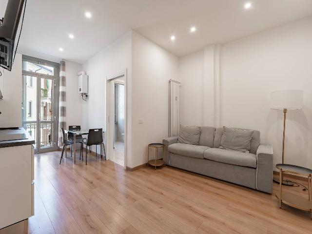 L'appartamento, completamente ristrutturato, doppia esposizione Est - Ovest offre una disposizione funzionale e accogliente. Ingresso con soggiorno, cucina a vista, bagno e balcone interno.