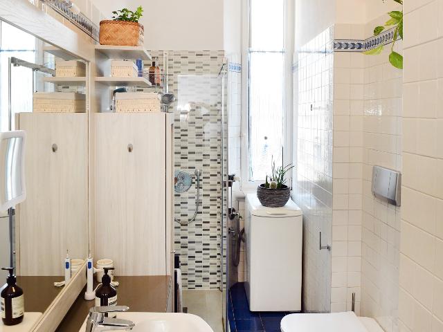 La zona notte comprende una spaziosa e silenziosa camera matrimoniale e un bagno finestrato completo di doccia. Gli infissi con doppio vetro assicurano ottimo isolamento termico e acustico.