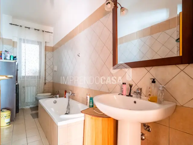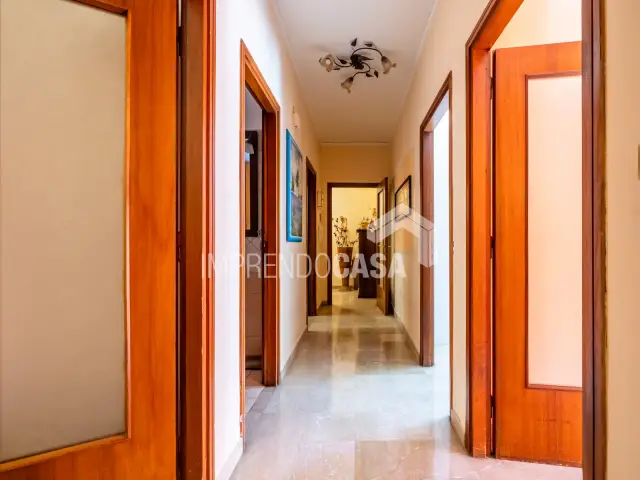 L’appartamento è dotato di pavimentazione in marmo e ceramica, porta d’ingresso blindata, infissi in legno douglas.