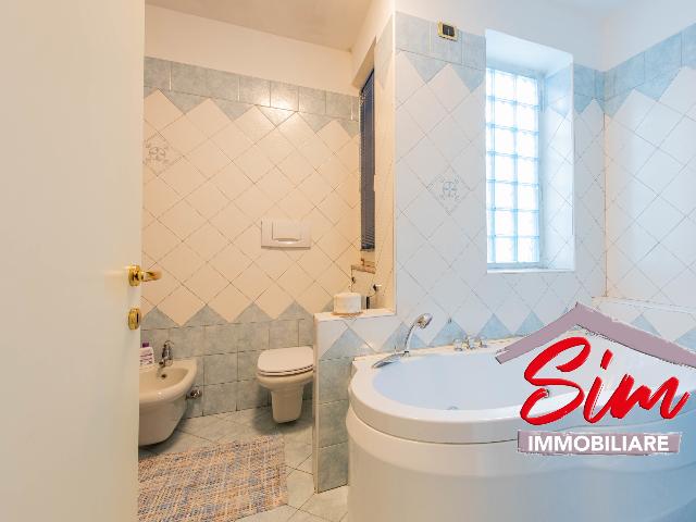 Completano il piano una zona lavanderia, un bagno aggiuntivo, il locale caldaia e un box auto di ben 57 mq, che offre ampio spazio per più veicoli e per ogni necessità di deposito.
