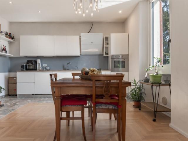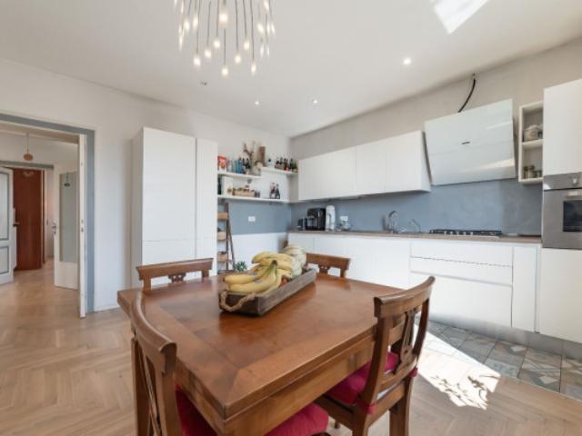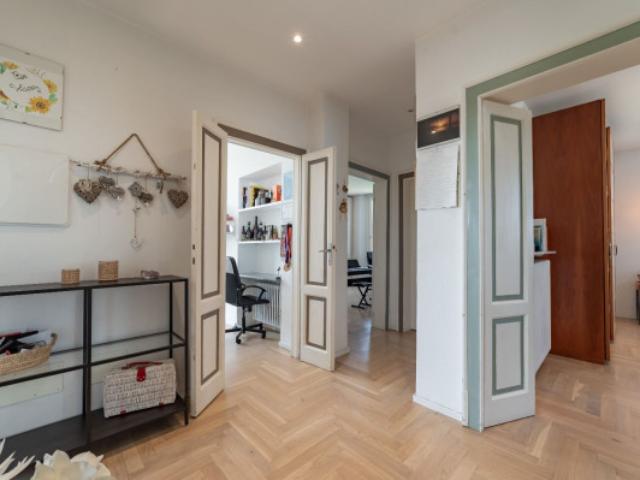 Al piano primo troviamo l'appartamento residenziale, caratterizzato da ampi spazi luminosi. La zona giorno si compone di un grande soggiorno e di una spaziosa cucina abitabile. La zona notte ospita due camere matrimoniali, un locale studio adibito a camera e un bagno completamente ristrutturato. L'intervento del 2018 ha incluso anche il rifacimento dei pavimenti, rendendo gli ambienti ancora più accoglienti. Il piano sottotetto, pur non essendo stato oggetto di interventi strutturali, è stato predisposto con impianti elettrici e idraulici.