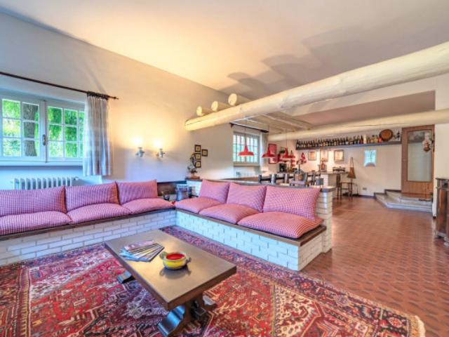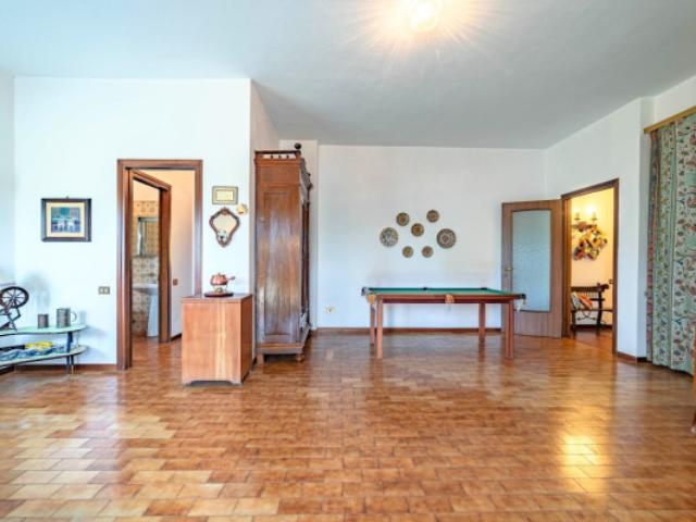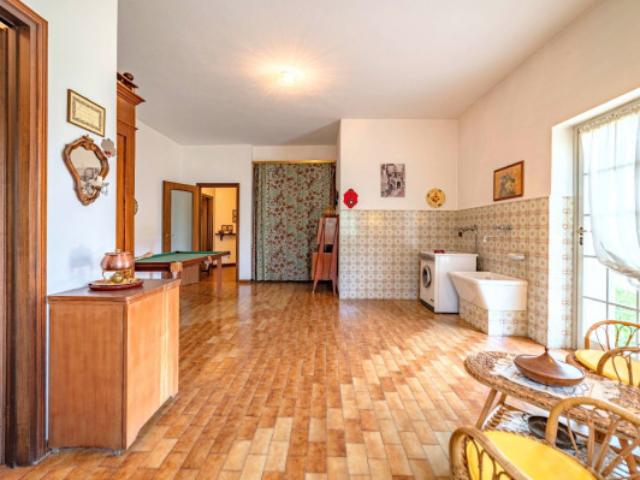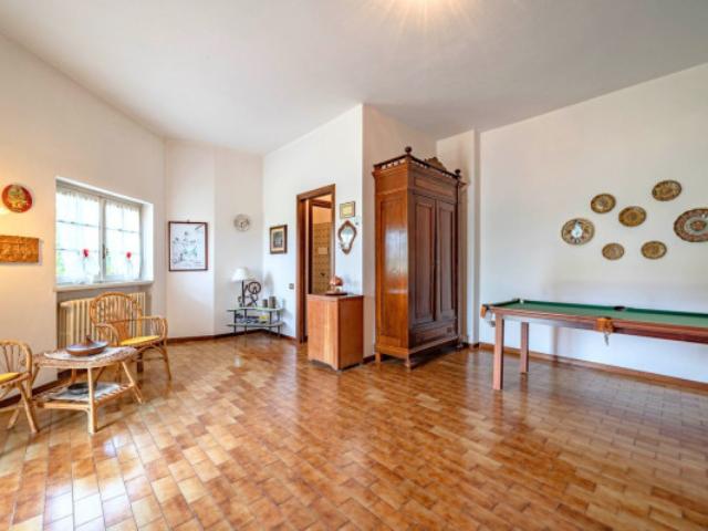 Costruita nei primi anni '70, la villa si sviluppa su più livelli ed è attualmente suddivisa in tre appartamenti indipendenti. Al piano terra si trovano locali accessori e taverna (115 mq) completamente fuori terra, una cantina, un'autorimessa di 50 mq e un bellissimo giardino privato di oltre 1.200 mq. I locali al piano terra offrono anche la possibilità di realizzare un ulteriore appartamento abitativo.