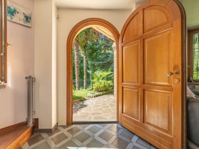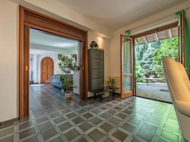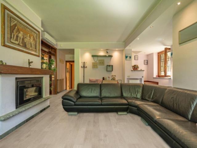 La villa è completata da dotazioni moderne e finiture di qualità. L'accesso è garantito da un cancello automatico, mentre il sistema di videosorveglianza attivo 24 ore su 24, l'antifurto con sensori volumetrici e perimetrali e il videocitofono su due piani assicurano sicurezza e tranquillità. Le pareti esterne in mattoncino San Marco offrono isolamento termico e acustico, il tetto è stato completamente rifatto nel 2010 con coibentazione e sostituzione delle tegole, e i serramenti in legno con doppi vetri garantiscono comfort e sicurezza. Il piano superiore e la scala sono valorizzati da parquet in rovere massello, recentemente riverniciato. L'impianto di riscaldamento è autonomo con caldaia a condensazione Immergas installata nel 2022, mentre la climatizzazione iSense, la stufa a pellet Extra Flame e il caminetto Ravelli assicurano ambienti caldi e accoglienti in ogni stagione.