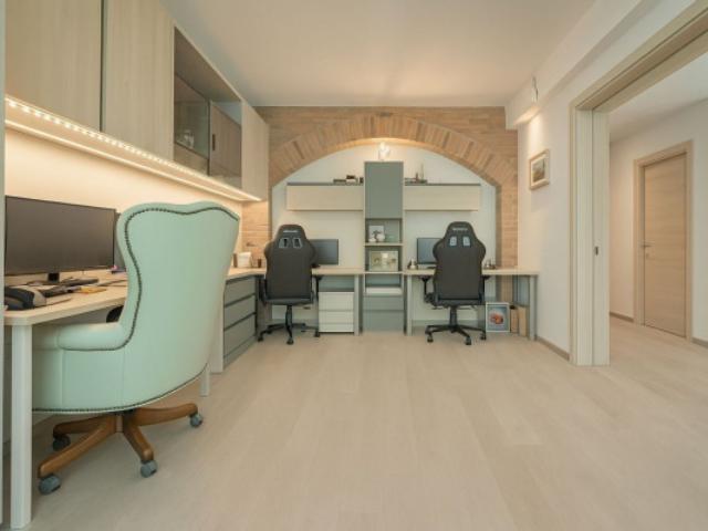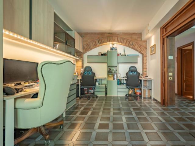 Al primo piano si sviluppa la zona notte, caratterizzata da tre camere da letto, di cui una con bagno privato, un locale studio che può essere utilizzato come quarta camera e un ulteriore bagno. Due balconi affacciati sul verde donano luce naturale agli ambienti e offrono piacevoli vedute panoramiche, rendendo ogni stanza confortevole e rilassante.