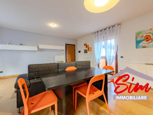 Un luminoso soggiorno con cucina a vista, il cuore caldo della casa dove condividere cene, film e progetti futuri