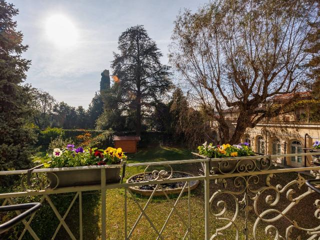 L'appartamento possiede due balconi uno con affaccio su via Colla e un altro più ampio e godibile sull'interno cortile con vista sul giardino botanico ricco di piante secolari e specie rare allestito nell'800 da Luigi Colla.