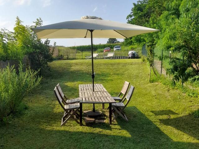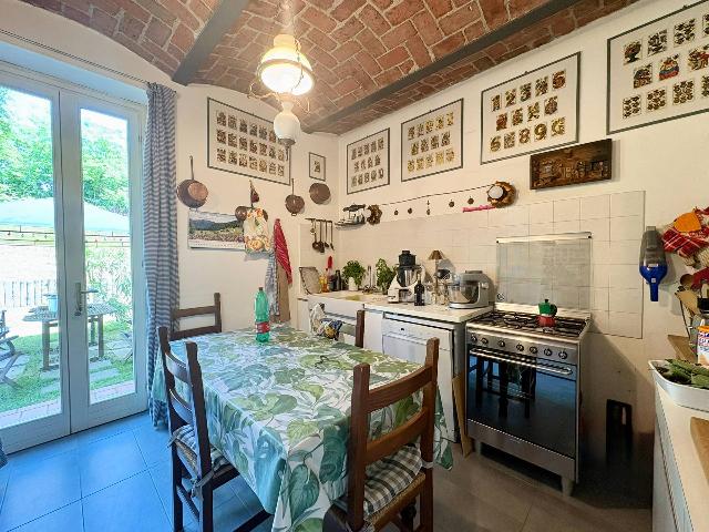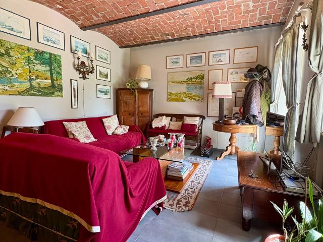 L'ingresso si apre su un soggiorno di generose dimensioni, caratterizzato da suggestivi soffitti a volta con mattoni a vista, che donano calore e personalità all'ambiente. La zona giorno comprende inoltre una cucina abitabile, un bagno e l'accesso diretto al pratico giardino privato, perfetto per momenti di relax o convivialità all'aperto.