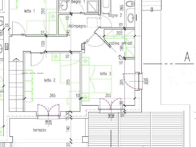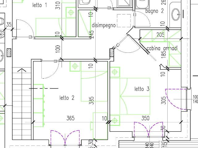 Una scala interna conduce al piano primo (circa 80 mq), dove si sviluppa la zona notte composta da tre camere da letto, di cui una con cabina armadi, due bagni e un balcone a servizio di una camera da letto.