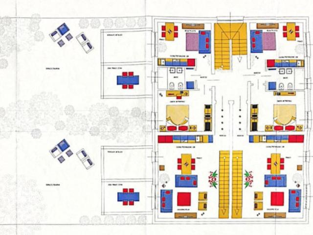 Il trilocale è così composto: Ingresso, cucina semi-abitabile, due camere da letto, bagno ed un terrazzo che si sviluppa su tutta la lunghezza dell'appartamento.