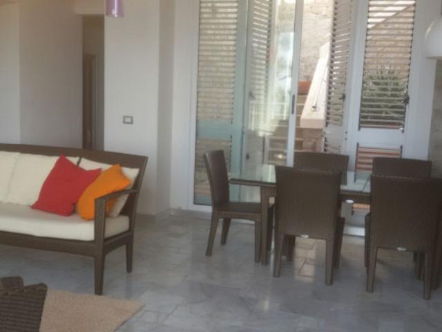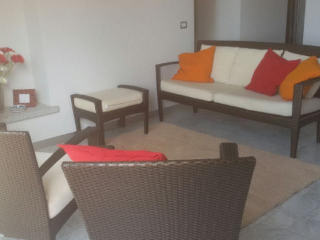 Questo appartamento è composto da ingresso, soggiorno con angolo cottura, camera da letto ed un bagno. Il fulcro di questo bilocale è la veranda che affaccia sullo splendido golfo.