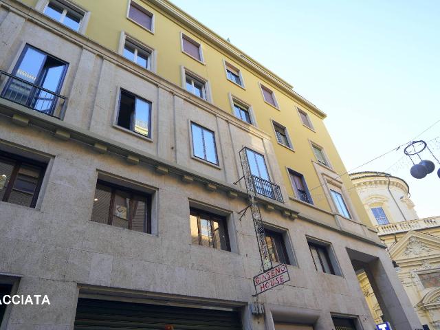 In pieno centro a Torino, a pochi passi da Via Roma e in una zona comoda e ricca di servizi, proponiamo in affitto un luminoso appartamento completamente arredato, situato al quarto piano di un elegante edificio storico degli anni '40 dotato di ascensore.