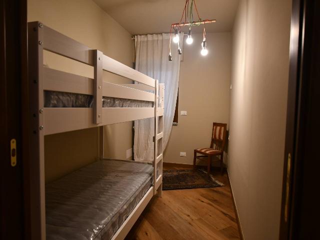 Gli spazi sono ben organizzati, si accede ad un ampio ingresso living con angolo cottura attrezzato di tutti gli elettrodomestici, e la zona notte è suddivisa in due camere da letto di cui una matrimoniale e una con un letto a castello ed il bagno.