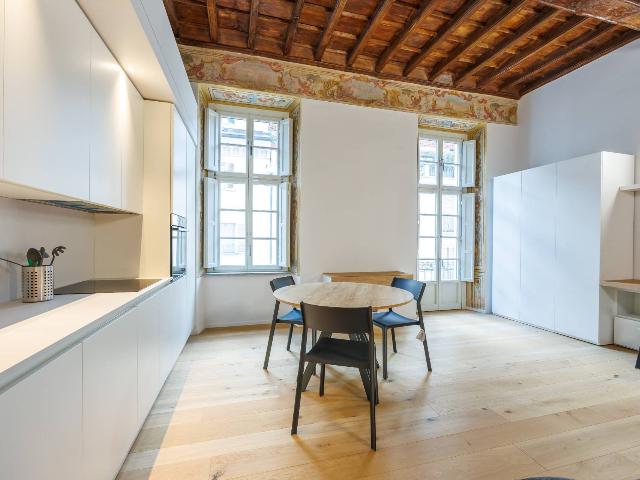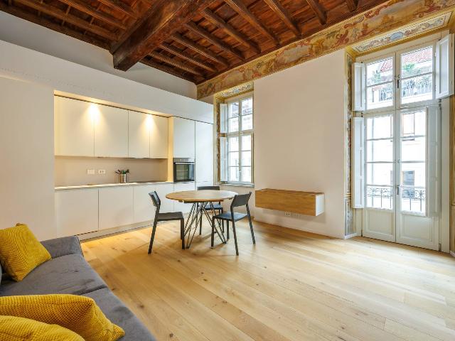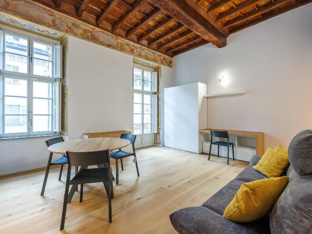 Situato al terzo piano, l'appartamento viene affittato completamente arredato ed è composto ingresso su disimpegno, soggiorno con angolo cottura arredato con cucina ed elettrodomestici, zona living/notte un bagno. Due ampie porte finestre affacciano su Via San Francesco Da Paola.
