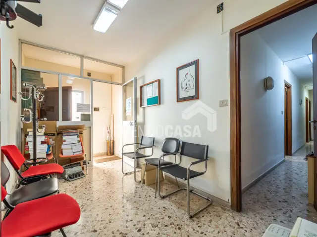 L’ufficio si presenta in discreto stato ed è dotato da porta d’ingresso blindata, porte interne in legno, infissi in alluminio, pavimentazione in scaglie di marmo.